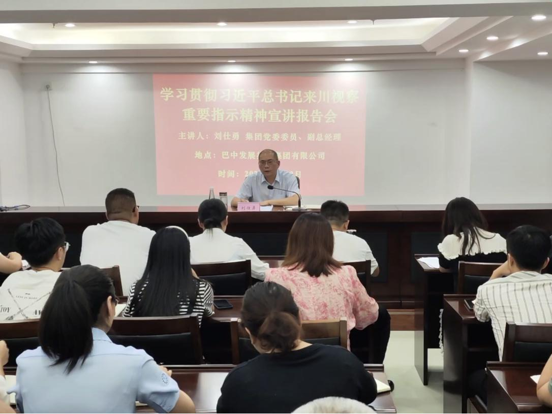 9月12日下午,為深入學(xué)習(xí)宣傳貫徹習(xí)近平總書(shū)記來(lái)川視察重要指示精神,切實(shí)把思想和行動(dòng)統(tǒng)一到以習(xí)近平同志為核心的黨中央決策部署上來(lái),巴中市鑫匯金融服務(wù)有限公司開(kāi)展專(zhuān)題宣講活動(dòng),集團(tuán)公司黨委委員、副總經(jīng)理劉仕勇作專(zhuān)題宣講報(bào)告,公司全體職工及下屬企業(yè)中層管理人員參加會(huì)議。